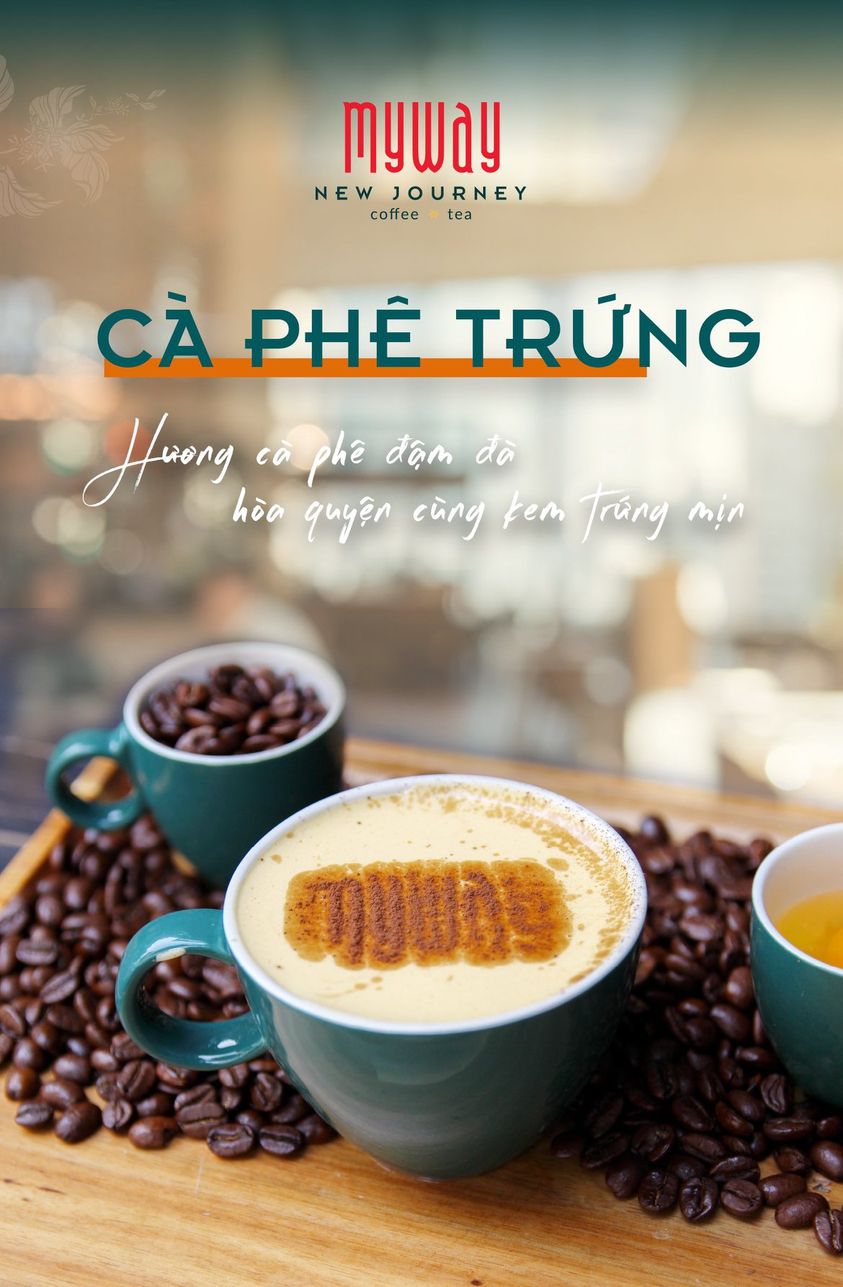 Hương cà phê đậm đà, hòa quyện cùng kem trứng mịn. Tất cả có trong ly cà phê trứng thơm ngon, đúng chuẩn thử là phê tại My Way New Journey Coffee & Tea.